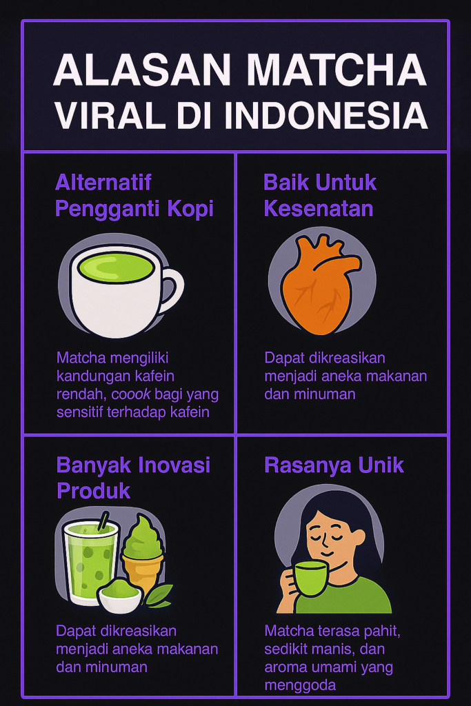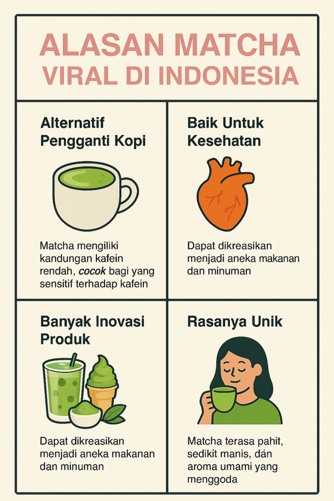 “Tolong tambahkan logo pintar prompt yang ada di dalam gambar yang aku attach ini ke poster infografis ‘alasan matcha viral di indonesia”‘ya